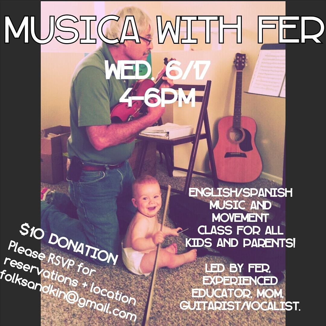 We have an awesome special guest at this week’s meetup – Mariana’s new mom friend Fer (short for Fernanda Karolys) is going to lead a bilingual English/Spanish music and movement class for all the folks and kin! She’s super talented, a new mom herself, and has led music classes all around LA. Catch her this week before she moves back home to Ecuador forever! She’ll be driving from the valley, with a new baby, so let’s show her some love with a $10 donation. RSVP by email (folksandkin@gmail.com) or message on Instagram & Facebook. And while you’re at it, sign up for our new weekly email updates, so that you are the first to know the events and special news.